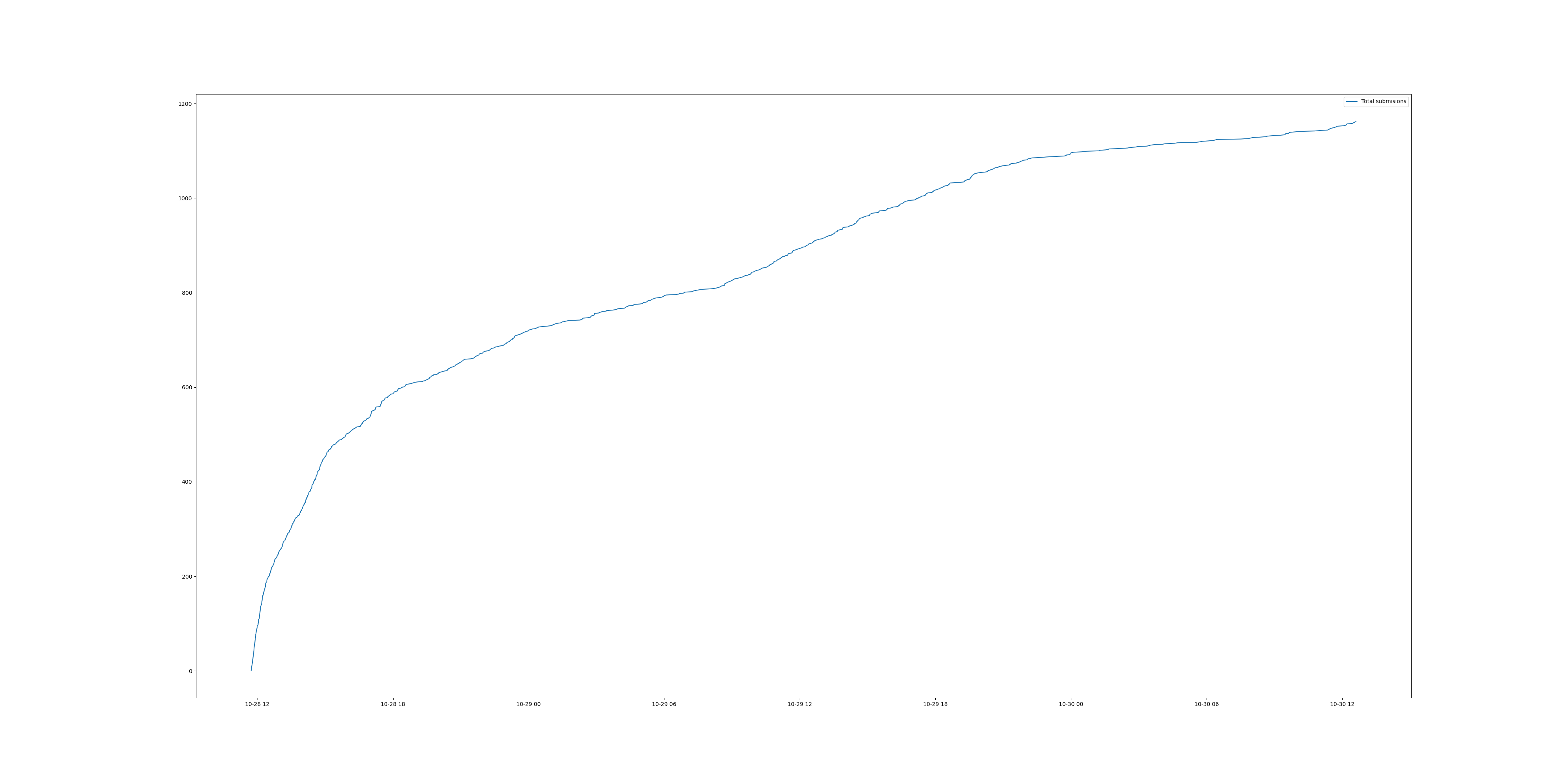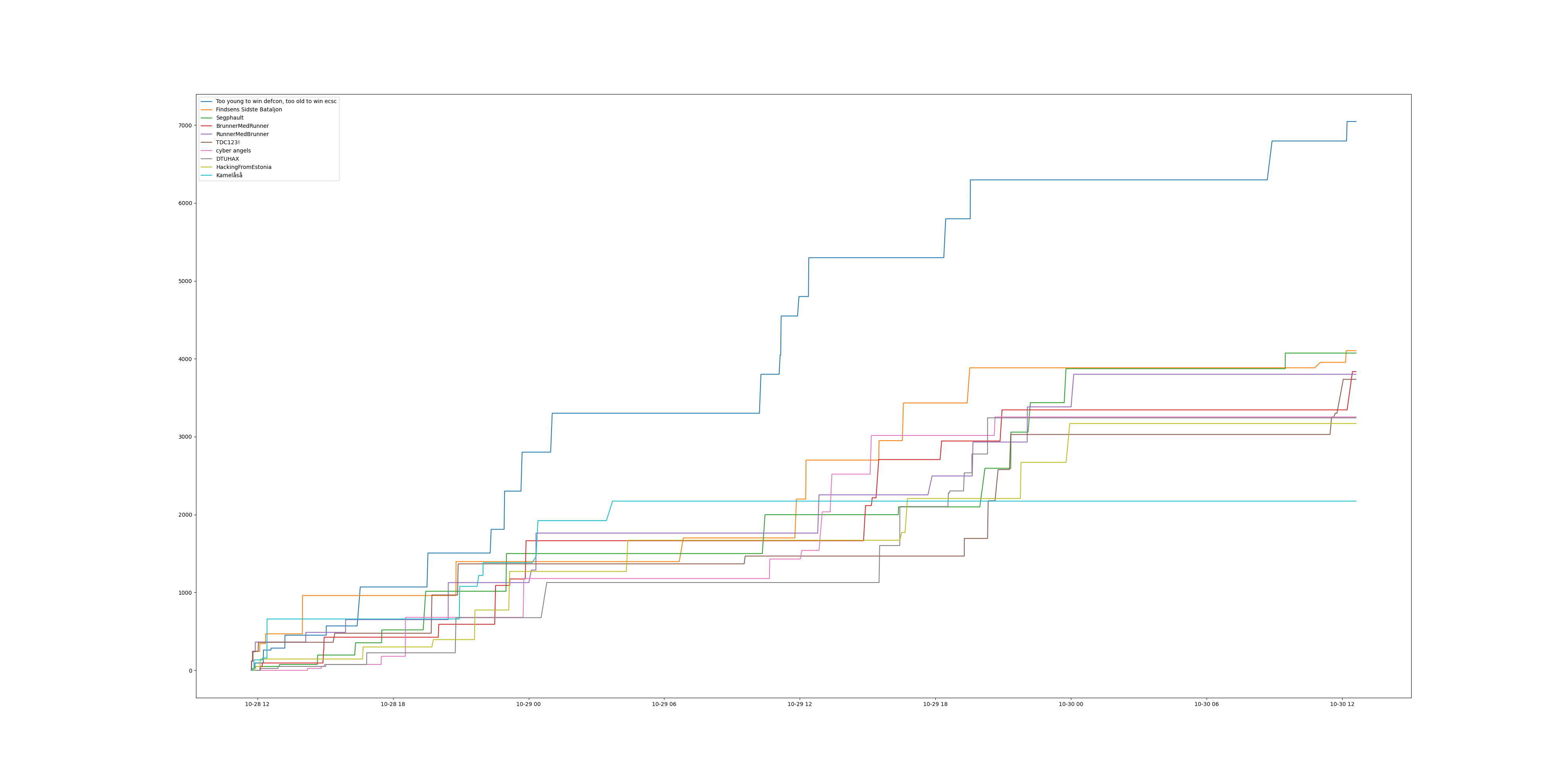 Our scoring system caused some confusion among players (especially those who were not aware of the FAQ). Some players also felt that the decaying nature of the points given to teams who solved a challenge later was unfair.